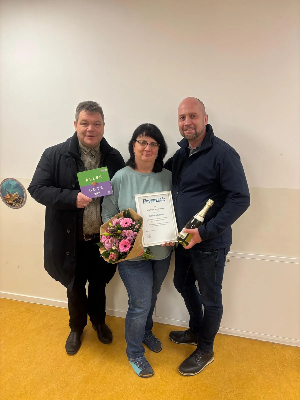 Zu diesem besonderen Dienstjubiläum überbrachten der Bürgermeister sowie der stellvertretende Bürgermeister die herzlichen Glückwünsche der Gemeinde und dankten ihr mit einer Ehrenurkunde für ihren langjährigen Einsatz.
