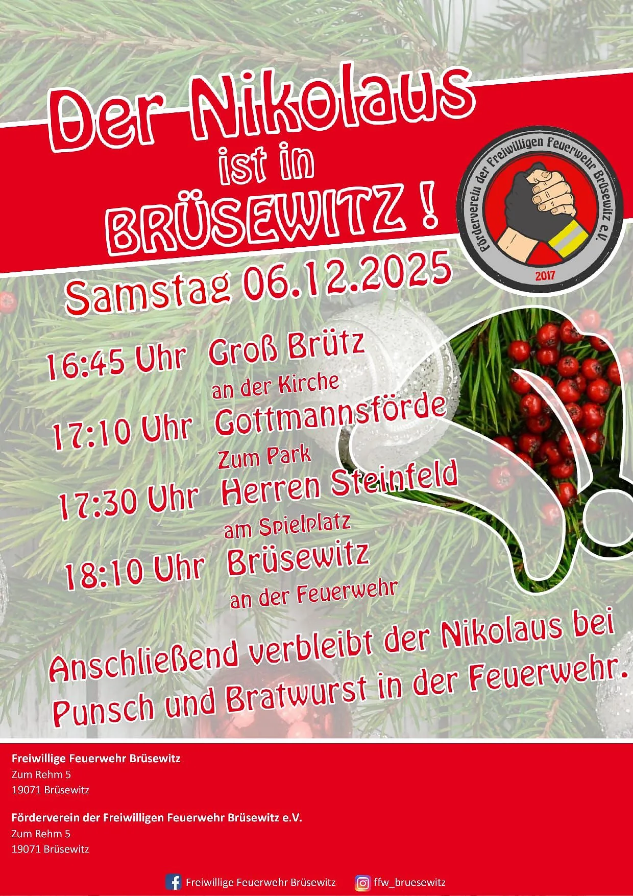 Der Nikolaus hat uns mitgeteilt, dass er wie auch im letzten Jahr unsere vier Ortsteile besuchen möchte.