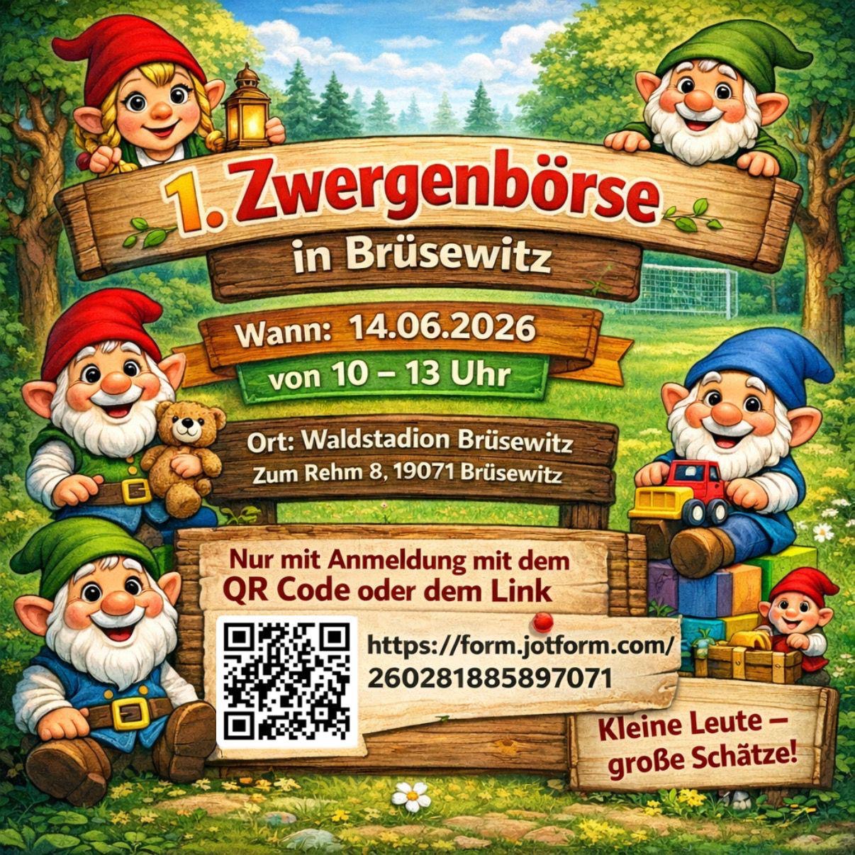Am 14. Juni wartet zum Abschluss unseres Dorf- und Sportfestes noch ein besonderes Highlight für die kleinen Gäste: die 1. Zwergenbörse in Brüsewitz.
